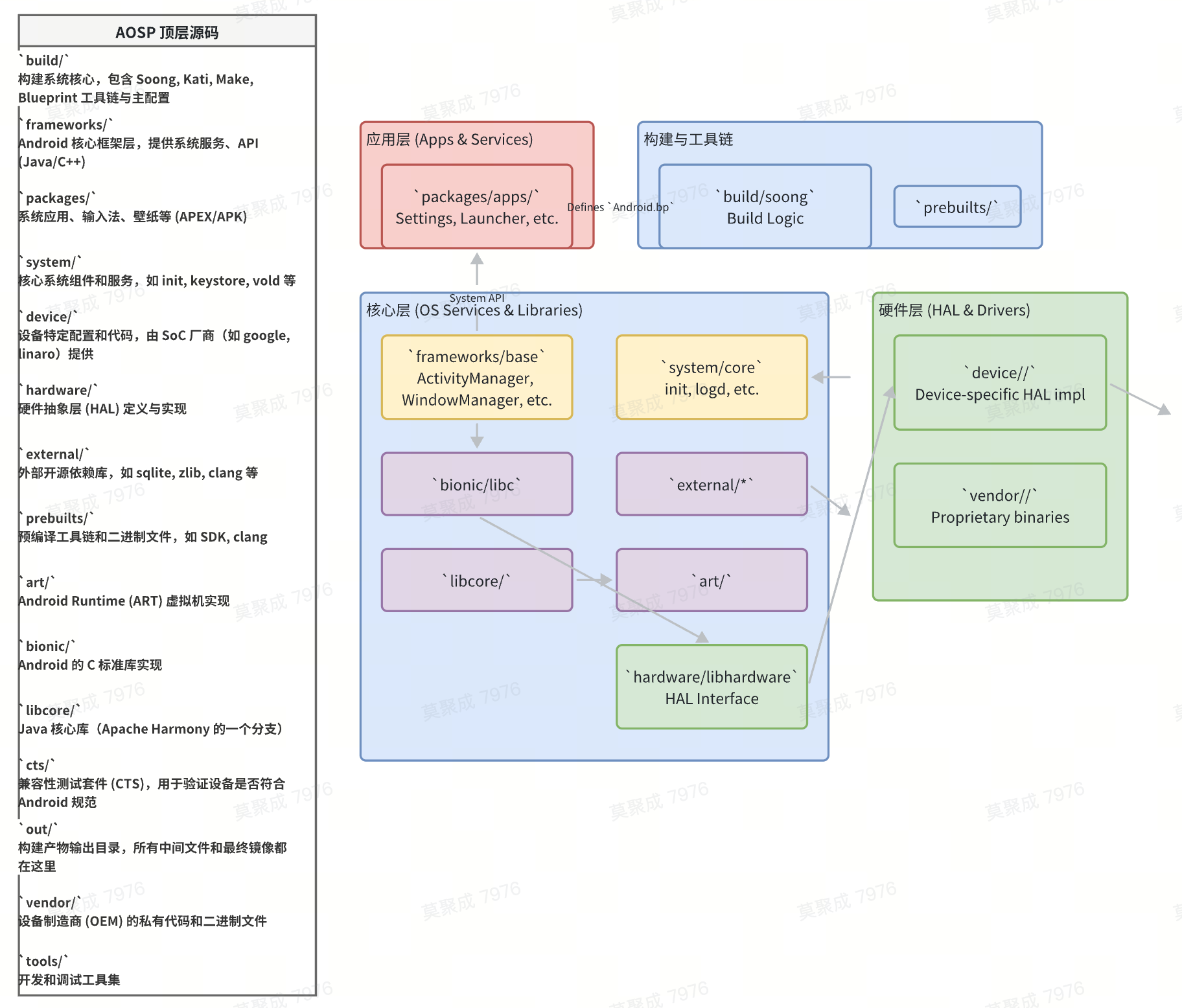- 系统构建:AOSP 完全依赖 GNU Make,每个模块需编写