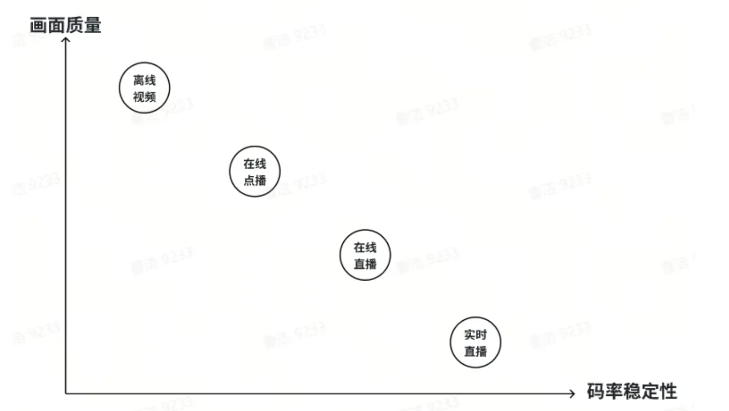 直播大致可以分为会议直播和娱乐直播两类场景。会议直播是需要实时互动的,主要考虑传输的实时性,一般采用 UDP 作为底层传输协议;娱乐直播则对实时性要求不高,更加关注画面的质量、音视频卡顿等体验问题,一般采用 TCP 作为底层传输协议。