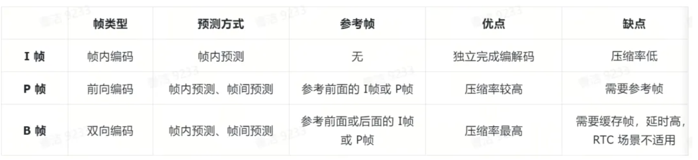 - 定义帧,将每组的图像帧归分为 I 帧、P 帧和 B 帧三种类型;